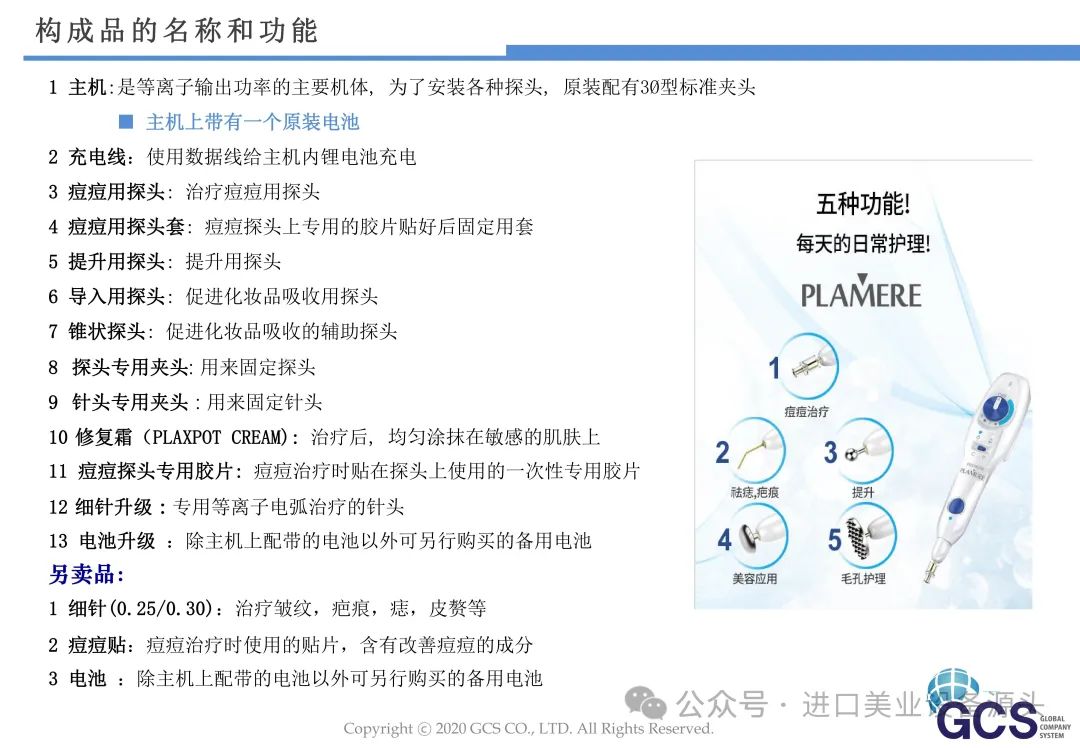 - 等离子技术:GCS普拉美尔等离子美容仪采用先进的等离子技术,能够精确地作用于肌肤,刺激皮肤细胞的活性,促进胶原蛋白的生成。